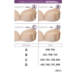 Podprsenka od Julimex. Model WOW. Výrobek je vyroben z 95 % z polyuretanu, 3 % z polyesteru a 2 % ze silikonu. Samonosné spodní prádlo. Výhody produktu: senzační samonosné šněrování. Výrobek pro ženy.