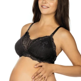 Podprsenka od Lupoline. Model 3046. Výrobek má nastavitelné popruhy bez možnosti odepnutí. Kovové háčky na popruh. Podprsenka se zapínáním na háčky a oči. Upevňovací bod: vzadu. Dvě řady svislých háčků. Tři stupně horizontálních háčků. Výrobek je vyroben z 90 % z polyamidu, 20 % z elastanu a 10 % z bavlny. Výrobek pro ženy. Těhotenské oblečení. Výhody produktu: elegantní krajka pro kojící matky v těhotenství.
