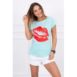 Mátová halenka s potiskem rtů