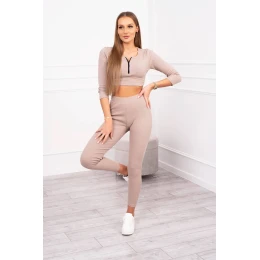 Pruhovaný komplet krátký top tmavě béžový