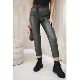 model 20553448 kalhoty s páskem khaki - K-Fashion