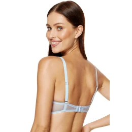 Biustonosz marki Gorteks. Model Mable/B1. Posiada druty, które podpierają piersi odpowiednio je kształtując. Fiszbiny pionowe osadzone na bokach. Produkt posiada regulowane ramiączka z możliwością ich odpięcia. Haczyki do ramiączek metalowe. Biustonosz zapinany na haftki. Miejsce zapięcia: tył. Dwa rzędy haftek pionowych. Trzy stopnie haftek poziomych. Produkt został wykonany z 65% poliamid, 20% poliester, 10% bawełna, 5% elastan. Produkt damski. Produkt posiada kieszonki na wkładki.