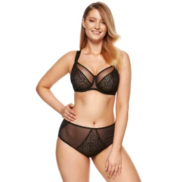 Biustonosz marki Gorteks. Model Gabi/B2 V2. Posiada druty, które podpierają piersi odpowiednio je kształtując. Fiszbiny pionowe osadzone na bokach. Produkt posiada regulowane ramiączka bez możliwości ich odpięcia. Haczyki do ramiączek metalowe. Biustonosz zapinany na haftki. Miejsce zapięcia: tył. Produkt został wykonany z 70% poliamid, 25% poliester, 5% elastan. Produkt damski.