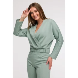Designed and made in Poland FIT & CUT Fit: Loose wrap-style sweatshirt (overlapping front in a V shape), with an elastic waistband that accentuates the silhouette