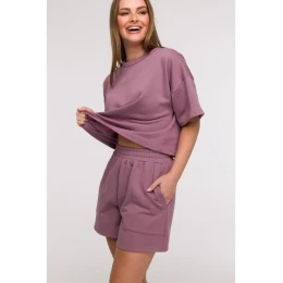 MATERIÁL Materiál: Silná mikinová tkanina 90% bavlna 10% polyester PODROBNOSTI O PRODUKTU Kapsy: Velké našité kapsy na přední straně Vzor: Jednobarevný Podšívka: Žádná Zapínání: Elastický pásek Model: B295 Navrženo a vyrobeno v Polsku Střih a střih Střih: Volný, pohodlný střih s vysokým pasem Tvar: Trapézové nohavice Délka: Krátké nohavice Použití: Ideální pro každodenní stylizaci - procházky, nákupy, výlety nebo odpočinek doma Typ postavy: Vhodné pro většinu postav, ideální pro hruškovité siluety - volné nohavice a vysoký pas pomáhají vyvážit proporce Modelka na fotografii je vysoká 170 cm a má na sobě velikost S