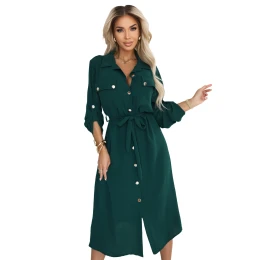 model 21402432 Midi košilka se zlatými knoflíky a vázáním zelená - numoco basic