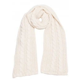 HLAVNÍ VLÁKNO: 85% akryl 15% nylon MATERIÁL Měkká příze s hustým úpletem a ozdobným vzorem kabelů PODROBNOSTI O VÝROBKU Střih: dlouhá rovná šála Styl: široký, obepínající Vzor: klasické kabelové úplety