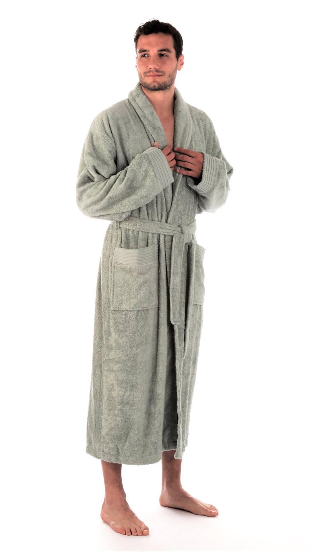 Luxusní župan Austin z bambusové viskózy se šálovým límcem a elegantními bordurami na rukávech a kapsách.