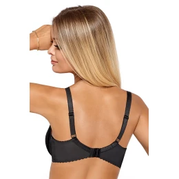 Biustonosz marki PariPari. Model Cynthia. Posiada druty, które podpierają piersi odpowiednio je kształtując. Fiszbiny pionowe osadzone na bokach. Produkt posiada regulowane ramiączka bez możliwości ich odpięcia. Haczyki do ramiączek metalowe. Biustonosz zapinany na haftki. Miejsce zapięcia: tył. Produkt został wykonany z 80% poliamid, 20% elastan. Produkt damski.