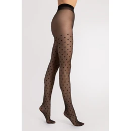 Elegantní punčochové kalhoty s bodovým motivem drobných kosočtvercůópravidelně rozmístěných na kabaretním vzoru s velkými oky. Matné punčocháče s motivem ve vintage stylu.
