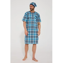 Pánská noční košile KR 109 W/26 je klasikou pro muže, kteří si cení pohodlí a tradičního stylu spaní. Je vyrobena ze 100% přírodní bavlny, je měkká, prodyšná a šetrná k pokožce. Model s krátkými rukávy a výstřihem na knoflíky zajišťuje volnost pohybu a pohodlí při nošení. Na hrudi je praktická kapsa. Košile je k dispozici v kostkovaném nebo vzorovaném provedení, což jí dodává nadčasový charakter. Celek je doplněn odpovídajícím županem, který dodává klasický šarm staré školy.