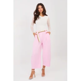 Moderní dámské džíny typu wide leg, které spojují pohodlí s moderním stylem. Vyrobené z vysoce kvalitní bavlny s přídavkem elastanu, zaručují pohodlné nošení a volnost pohybu po celý den. Model má vysoký pas a vsazenou gumu v pasu, díky čemuž se dokonale přizpůsobuje postavě bez nutnosti zapínání. Záhyby na přední straně přidávají eleganci a opticky zúžují nohy. Široké nohavice zdůrazňují módní charakter džínů a zajišťují lehkost stylizace. Džíny jsou vybaveny bočními kapsami a zapínacím páskem, který je praktickým a stylovým doplňkem. Hladký vzor dělá z tohoto modelu skvělý kousek jak pro každodenní stylizace, tak i do práce v ležérním provedení. Univerzální, pohodlné a stylové, ideální základ pro mnoho outfitů.