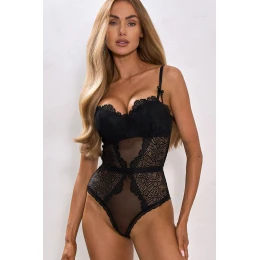 Smyslné cerné krajkové dámské body s misami BARDOTTA NIGHT je nabídkou pro ženy, které chtejí zdůraznit svou postavu elegantním a nesmírně ženským způsobem. Model je vyroben z jemné, pečlivě zdobené krajky, kombinované s jemnými průhlednými vložkami, které efektním a zároveň rafinovaným způsobem zdůrazňují tělo. Pečlivě navržená konstrukce dokonale padne k postavě, opticky zeštíhluje pas a zdůrazňuje jeho tvar. Horní část body je vybavena vyztuženými misami typu bardotka, které krásně zdvihují a tvarují poprsí. Vestavěný push-up jemně zdvihuje prsa, zdůrazňuje výstřih a dodává postavě výjimečně ženské proporce. Celý model je doplněn nastavitelnými ramínky a elegantními krajkovými detaily, které dodávají modelu luxusní charakter. Body BARDOTTA NIGHT se skvěle hodí na výjimečné příležitosti, ale také jako prvek, který vám umožní cítit se krásně a sebevědomě každý den. Můžete jej nosit samostatně v intimních s elastan 9,8 %