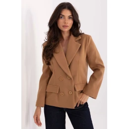 Tento elegantný dámsky kabát s golierom je klasickou voľbou pre ženy, ktoré oceňujú nadčasový štýl a pohodlie. Krátky strih s dlhými rukávmi je ideálny na každodenné nosenie, ako aj na doplnenie pracovného oblečenia. Dvojradové zapínanie na gombíky zdôrazňuje elegantný charakter kabátu, zatiaľ čo hladká štruktúra materiálu mu dodáva všestrannosť a jemnú eleganciu. Model je vyrobený z polyesteru, je ľahký a pohodlný na nosenie, pričom absencia podšívky z neho robí ideálny prechodný kabát na jesenné, zimné a jarné obdobie. Hodí sa ku nohaviciam aj sukniam, čím vytvára štýlový vzhľad na rôzne príležitosti.