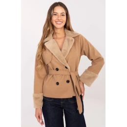 Tento elegantní dámský kabát s kožešinou je skvělou volbou na podzim/zimu, ideální jak do práce, tak na významnější události. Vyrobený z vysoce kvalitní směsi polyesteru a elastanu, poskytuje pohodlí nošení, odolnost a estetický vzhled. Model s kratším střihem vypadá velmi žensky a moderně. Má dlouhý rukáv, dvouradé zapínání na knoflíky a pásek na přezouvání v pasu, který krásně zdůrazňuje postavu. Hladká struktura materiálu a kožešina na konci dodávají celku elegantní charakter. Kabát je podšitý, co zvyšuje pohodlí nošení, i když nemá žádné další podšívky, je ideální na chladnější, ale ne mrazivé dny. Je to stylový model pro ženy, které oceňují klasiku v moderním podání, decentní, elegantní a perfektně zapadající do každodenních stylizací.