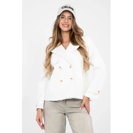 Zamší kabát pro dámy je stylová volba v casualovém podání, ideální na každý den. Skvěle se hodí do podzimní, zimní a jarní sezóny jako lehká vrchní vrstva, která podtrhuje charakter každého outfitu. Model s krátkou délkou je vyroben z příjemného materiálu na bázi polyesteru s přídavkem elastanu. Hladká struktura mu dodává elegantní jednoduchost a jemně elastická tkanina zajišťuje pohodlí a volnost pohybu. Kabát nemá žádné podšívky ani vycpávky, což ho dělá ideálním pro přechodné období. Dvojitý řadový knoflíkový uzávěr zdůrazňuje klasický střih, a límcem s rozložitými límci dodává celku eleganci. Dlouhý rukáv ozdobený páskem s knoflíkem je decentní, stylový detail. Praktické kapsy zvyšují funkcionalitu modelu. Jedná se o univerzální kabát, který snadno sladíte jak s džíny a botami, tak s elegantnějšími každodenními outfit.