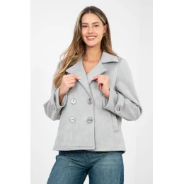 Zamšový přechodný dámský kabát je stylovým návrhem v casualovém provedení, ideálním na každodenní nošení. Skvěle se hodí do podzimního, zimního a jarního období jako lehká vrchní vrstva, která podtrhuje charakter každého outfitu. Krátký model je vyroben z příjemného materiálu z polyesteru s přídavkem elastanu. Hladká struktura dodává kabátu elegantní jednoduchost, zatímco jemně elastická tkanina zajišťuje pohodlí a volnost pohybu. Kabát nemá žádné podšívky ani výplně, díky čemuž je skvělý na přechodné období. Dvouřadé zapínání na knoflíky zdůrazňuje klasický střih, zatímco límce s límci dodává celku eleganci. Dlouhý rukáv ozdobený páskem s knoflíkem je decentní, stylový detail. Praktické kapsy zvyšují funkcionalitu modelu. Jedná se o univerzální kabát, který snadno sladíte jak s džínami a botami, tak s elegantnějšími, každodenními outfity.