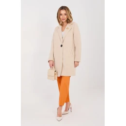 Elegantní dámský kabát s klasickým střihem je ideální volbou na přechodné období, podzim, zimu i jaro. Tento model se skvěle hodí jak do každodenních stylizací, tak jako vrchní oděv do práce, zdůrazňující profesionální a stylový vzhled. Kabát je vyroben z vysoce kvalitního pěnového materiálu z polyesteru s přídavkem elastanu, je lehký, pružný a příjemný na nošení. Tkanina dobře drží tvar a zároveň poskytuje pohodlí a volnost pohybů. Model bez podšívky se hodí jako univerzální vrchní oděv na teplejší, přechodné dny. Kabát má standardní délku a dlouhý rukáv. Klasický límec a skládané klopy mu dodávají nadčasovou eleganci. Jednořadé zapínání na knoflík zdůrazňuje minimalistický charakter střihu, a praktické kapsy zvyšují funkcionalitu. Celkový vzhled dokresluje ozdobná brož umístěná na klopu, představující stylový, ženský akcent.