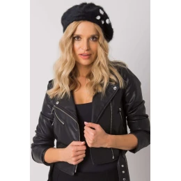 Baret v čiernej farbe zdobený kryštálmi.