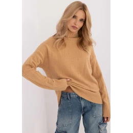 Dámsky golfový sveter, ktorý je ideálny na každodenné príležitostné nosenie. Je vyrobený z materiálu s rôznorodou štruktúrou, čo mu dodáva jedinečný charakter. Dominantným materiálom je zmes akrylu, polyesteru a polyamidu, ktorá zaručuje odolnosť a pohodlie pri nosení. Sveter má štandardnú dĺžku a dlhé rukávy, vďaka čomu je univerzálnou voľbou na chladnejšie dni.