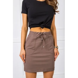Mikinová minisukňa je skvelým nápadom na ležérny minimalistický vzhľad. Je vyrobená z hladkého bavlneného úpletu, ktorý je veľmi príjemný a mäkký na dotyk, leží na tele a ľahko sa prispôsobí každej postave. V páse má táto mikinová sukňa elastický pás so zaväzovaním, ktorý umožňuje presné nastavenie. Dĺžka minisukne krásne zvýrazní vašu postavu a odhalí nohy, takže ju môžete nosiť s podpätkami alebo štýlovými teniskami.