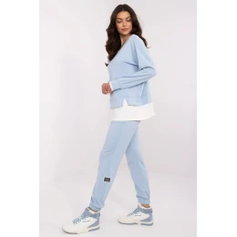 Dámska teplá súprava v športovom štýle, ideálna na každý deň. Je vyrobená z mäkkej a elastickej zmesi viskózy, polyesteru a elastanu, ktorá poskytuje pohodlie a voľnosť pohybu. Hladký materiál podčiarkuje moderný dizajn súpravy. Mikina s dlhým rukávom má v spodnej časti kontrastný pruh, ktorý jej dodáva originálny charakter. Nohavice s vysokým pásom a vreckami a nohavice so šnúrkou v páse zaručujú pohodlie a perfektné prispôsobenie. Ideálna voľba na relaxáciu doma, prechádzky alebo každodenné výlety. Materiál maslového typu, mimoriadne mäkký, príjemný na dotyk, dokonale sa prispôsobí telu.
