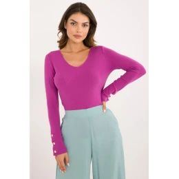 Tento dámsky ležérny sveter je ideálny na každodenné nosenie a do práce. Je vyrobený z kvalitnej zmesi viskózy, polyamidu a polyesteru, čo zaručuje pohodlie a odolnosť. Hladký vzor a klasická dĺžka z neho robia univerzálny kúsok oblečenia. Sveter má dlhé rukávy ukončené ozdobnými gombíkmi na zápästí, ktoré mu dodávajú jemný, elegantný akcent. Výstrih do V zvýrazňuje krk a dodáva celkový ženský nádych. Skvelá voľba do kancelárie aj na každodenné vychádzky.