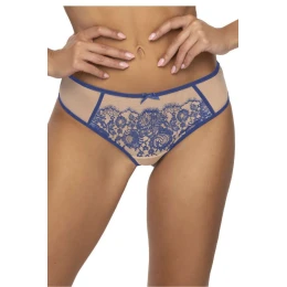 Tieto zvodné tangá Frances v tmavomodrej a béžovej farbe sú vyrobené z krásnej čipky a elastického tylu. Pás zdobí mašlička. Bavlnený klin.