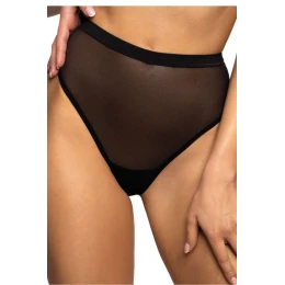Štýlové tangá Aggie s vysokým sedením v čiernej farbe. Tanga sú celé vyrobené z priehľadnej elastickej sieťoviny. V páse sú zakončené širšou gumičkou. Celok vytvára jedinečnú spodnú bielizeň pre ženy, ktoré majú rady výzvy.
