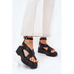 Dámske sandále z ekokože, osadené na platforme a mäkkom klinčeku, ktoré kombinujú pohodlie s módnym vzhľadom. Zapínajú sa okolo členka pomocou pracky s nastaviteľným remienkom, čo umožňuje ideálne prispôsobenie nohe. Mäkká stielka zaručuje pohodlie počas celého dňa. Tieto sandále sú ideálne na teplé dni, perfektne sa hodia k šatám, sukniam a nohaviciam a dodajú ľahkosť každému outfitu.