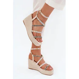 Dámske sandále z eko-semišu, umiestnené na klinčeku s platformou, spájajú štýl s pohodlím. Vyznačujú sa zdobenými remienkami, ktoré im dodávajú jedinečný charakter. Zapínajú sa na pracku, ktorá zaručuje skvelé držanie na nohe. Sú ideálne na letné dni, perfektne sa hodia k šatám, sukniam alebo šortkám.