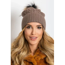 Zimná čiapka so širokým okrajom a huňatou bambulou.