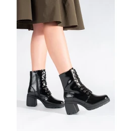 Moderní dámské kotníčkové boty černé na plochém podpatku