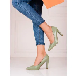 Moderní dámské zelené lodičky na jehlovém podpatku