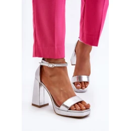 Moderní sandálky na podpatku stříbrné model 21650582 - Boto