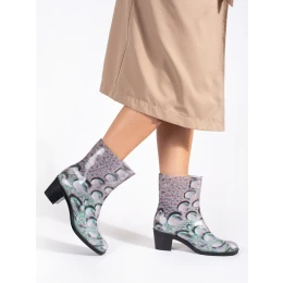 Módne dámske pestrofarebné gumáky na širokom podpätku