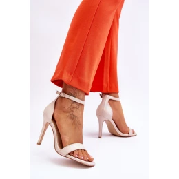 Modne Sandałki Szpilki Holograficzne Beżowe Rayden
