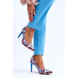 Modne Skórzane Szpilki Lewski Shoes 2659 Niebiesko-Czerwone