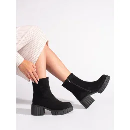 Módní černé dámské kotníčkové boty na širokém podpatku