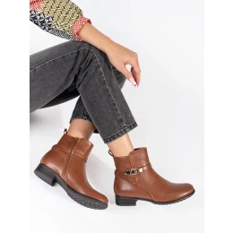Módní kotníčkové boty hnědé dámské na širokém podpatku