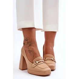 Tyto trendy lodičky jsou postaveny na masivním podpatku ve tvaru vyššího kostky a jemné platformě. Vyrobeny jsou z eko kůže. Navíc mají na přední straně pásek s ozdobou. Tyto lodičky mají také upevněnou patku. Měkká vložka je také vyrobena z eko kůže. Tento model by měl být ve vašem šatníku! Při výběru velikosti se řiďte tabulkou velikostí.