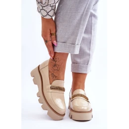 Módní mokasíny na platformě s ozdobou model 21615133 béžová - Laura Messi
