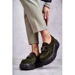 Modne Zamszowe Półbuty Na Platformie Khaki Lemar Marsol