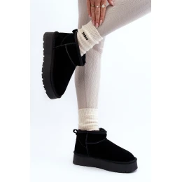 Modne Zamszowe Niskie Śniegowce Czarne Nucca