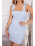 Modré nařasené šaty bez ramínek