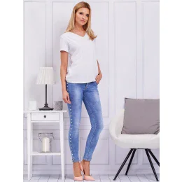Modré džínsové nohavice s perlami na bokoch
