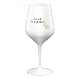 MOJE PSYCHOLOGLOGLOGLO - bílá nerozbitná sklenice na víno 470 ml