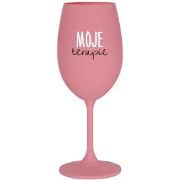 MOJE TERAPIE - růžová sklenice na víno 350 ml