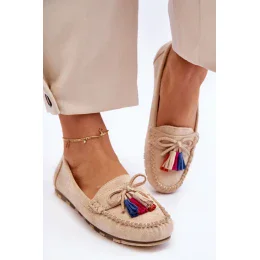 Neuveriteľne pohodlné dámske mokasíny boli vyrobené z ekologického semišu. Stielka z prírodnej kože zaistí pohodlie pri používaní. Tento strih doplní mnoho vašich štylizácií. Mokasíny boli usadené na jemnej platforme. Mokasíny majú navyše ozdobnú mašľu a strapce.