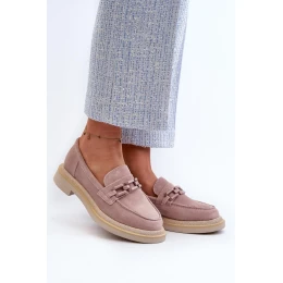 Dámske mokasíny vyrobené z prírodného semišu. Plochý podpätok zaručuje stabilitu a pohodlie pri chôdzi. Ozdobný prvok v prednej časti im dodáva originalitu, vďaka čomu sú nielen praktické, ale aj módne. Tieto mokasíny budú ideálnym doplnkom k mnohým rôznym outfitom, ležérnym aj elegantnejším.
